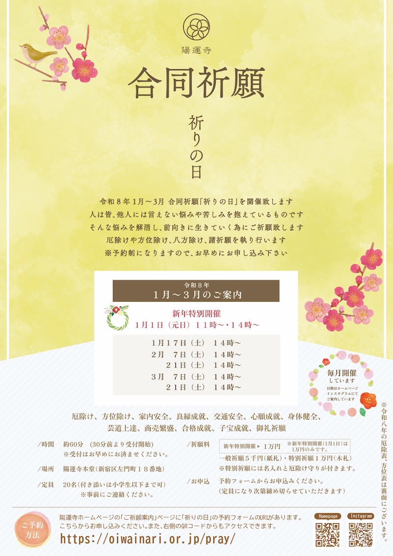 12月14日(日)10時より受付開始いたします【令和八年 合同祈願 祈りの日】 新年特別開催・1〜3月までのご案内